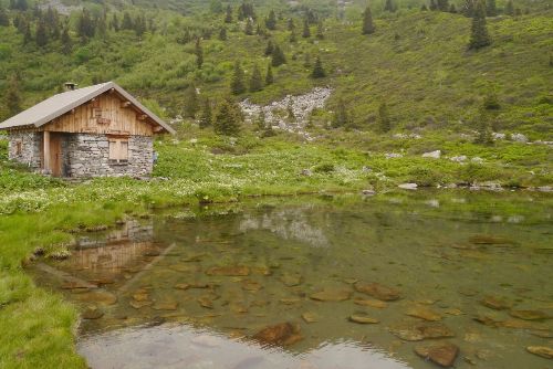Dans la vallée du Haut-Bréda de ce massif iséro-savoyard peu connu, les communes (La Ferrière et Pinsot) sont très attachées à la préservation et l'entretien de leur patrimoine montagnard. Elles rebâtissent, parfois à partir de ruines, ces anciens chalets d'alpage qui servent désormais pour les randonneurs et parfois encore pour les bergers. Une aubaine pour Tous à Poêle que ces cabanes grand luxe (certaines avec double vitrage!). Comme on essaie d'être à la hauteur et qu'une collaboration avec les municipalités s'est mise en place, nous nous faisons plaisir en bichonnage et construction d'aménagements : toilettes sèches, ameublement (table, bancs, étagères...).Notre seul souci : les mairies reconstruisent tellement de cabanes qu'on a du mal à suivre ! Résultat, nous avons un programme de chantier pour plusieurs années...