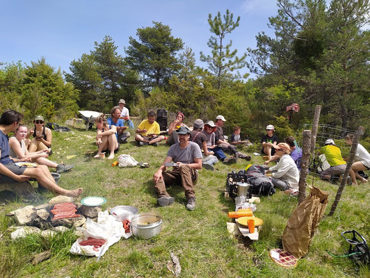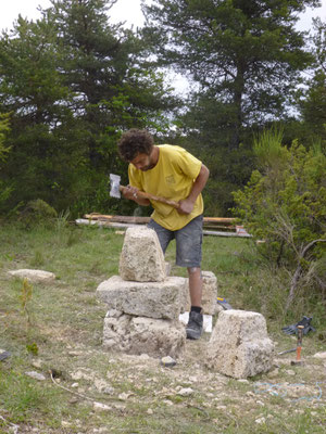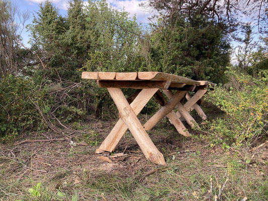 - construire du mobilier (tables, bancs) en menuiserie forestière pour le campement