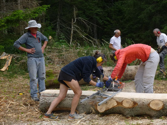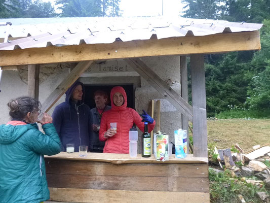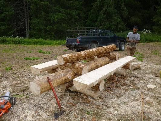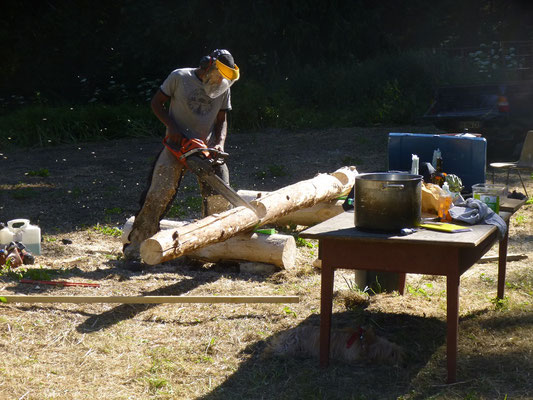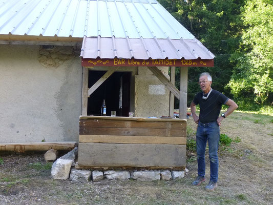 Extérieur : grande table en fuste avec ses bancs, un bar extérieur