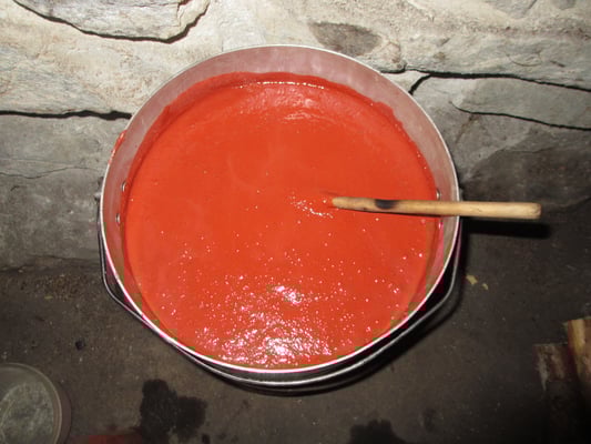 Fabrication de la peinture suédoise lors de chantiers, y compris sur feu de bois !